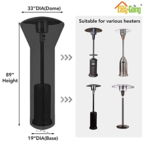 Easy-Going Patio Heater Cover with Zipper and Storage Bag, Waterproof Outdoor Heater Cover Dustproof, UV-Resisant, Wind-Resistant (89"H x 33"D x 19"B, Black)