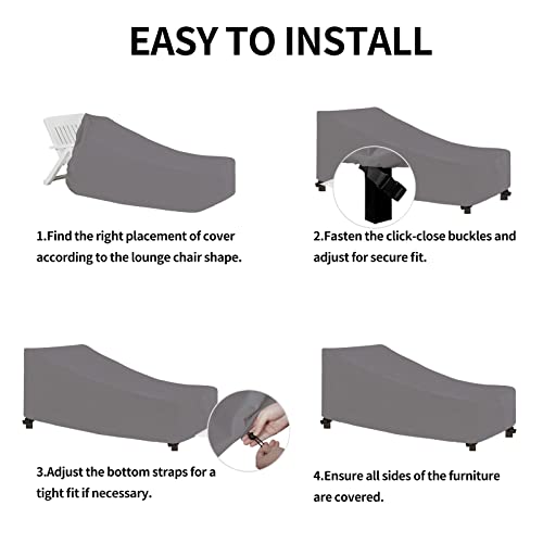Colorfast Fabric: The outdoor lounge chair cover is made of heavy duty yarn-dyed fabric, which can block most harmful UV rays to help minimize sunburn and prevent fading and separating for long time use, to extend the life span of your furniture.