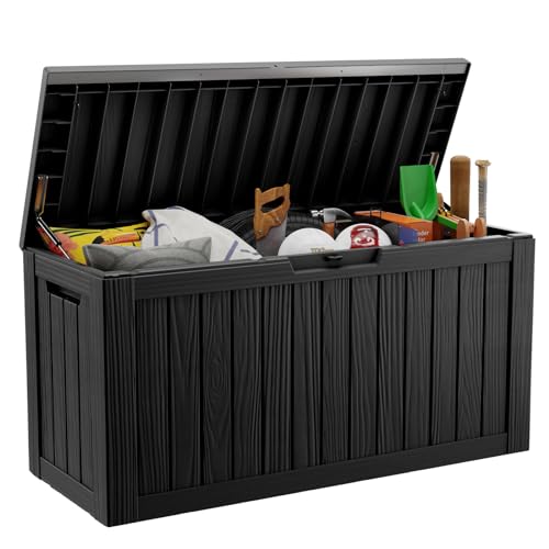 WATERPROOF AND FADE-RESISTANT - Made from durable, eco-friendly resin, this deck box is both waterproof and UV-resistant, ensuring long-lasting use. With UV resistance tested for over 1,000 hours, it protects your belongings from sun and rain throughout every season.
