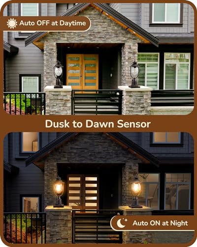 [Dusk to Dawn Photocell] Equipped with a high sensitive photocell sensor, EDISHINE dusk to dawn exterior post light will turn off at dawn and turn on at dusk automatically; free your hands, easy to use and energy-saving, perfect for outdoor areas such as garage, front door, yard, fence, terrace, and sidewalk