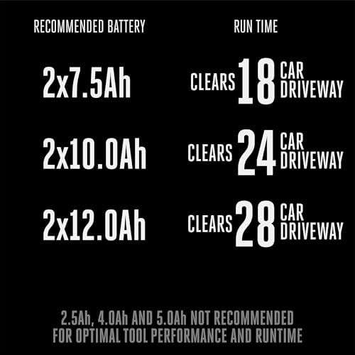 Clears an 18-car driveway with 8 inches of snow on a single charge when used with the two recommended 7.5Ah ARC Lithium batteries (available separately)