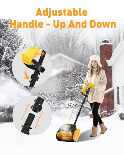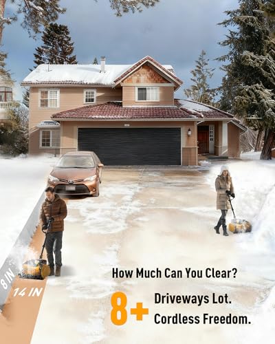 Precision Snow Control: A battery powered snow blower designed for maximum comfort and control. This cordless snow blower features an ergonomic adjustable handle to match your height. This snow blower letting direct snow exactly where you want - keeping driveways, patios, and sidewalks clear. This snow blower combines easy handling with professional results. Pro Tips: After use, avoid leaving your electric snowblower directly on snow to prevent damage - always store snow tools dry.
