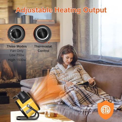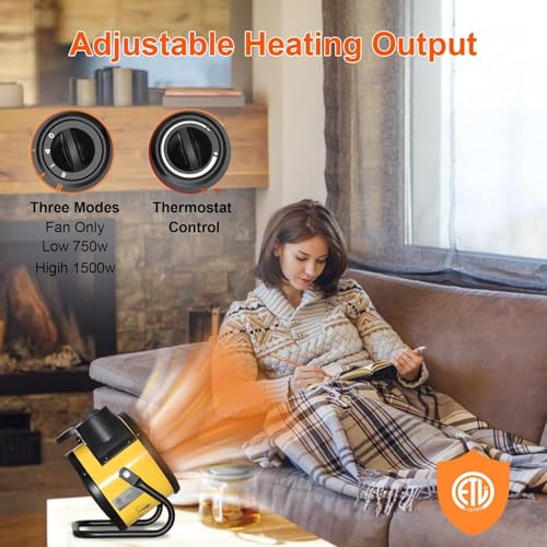 ?Adjustable Heat Setting for Outdoor?? Do you want a warm hug when coming home from the cold outside? Turn on this garage space heater fan, it will heat up instantly & welcome you home by a warm hug. It has 3 heat settings: fan only, low and high heat. The 1500 watt engine can heat the atmosphere quickly and warm your body in 3 seconds without noisy. You can enjoy natural wind in Autumn, hot wind in cold Winter.