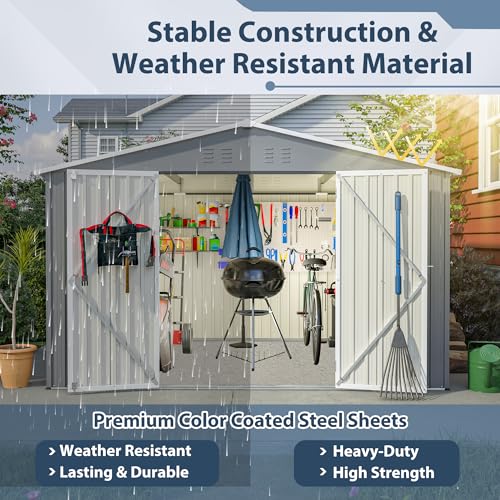 ????[ Extra Spacious Shed ]: Compared to traditional storage sheds available in the market, the 10x8 FT outdoor shed provides a larger area for storage, allowing you to accommodate everything you want to put away. No matter what purpose you intend to use it for, this will be your ultimate choice.