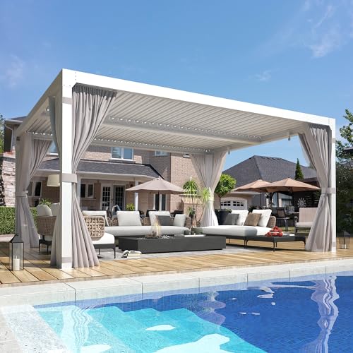 Aluminum Construction: The frame and louvers of this pergola are made of high-quality aluminum with a powder-coated finish, ensuring rust and corrosion resistance, sturdiness, and durability to withstand various outdoor elements for long-term use.