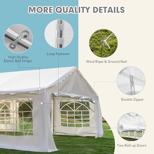 ?Multi-purpose Use?Overall size: 20'Wx50'Lx10'H, door size: 16.4'Wx6.6'H. This gazebo is a multi-purpose shelter that is the perfect tent for commercial or recreational purposes such as weddings, parties, events, and more. The spacious interior makes this tent also suitable as a carport