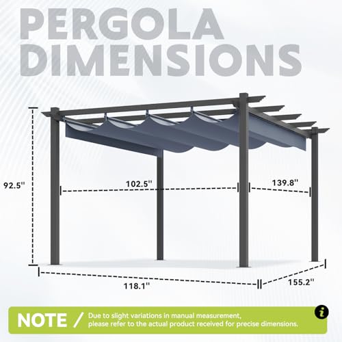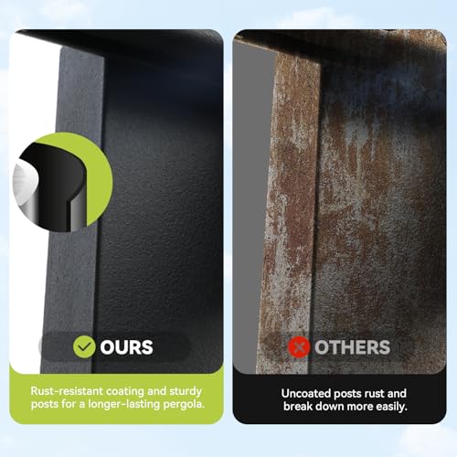 SPACIOUS AND VERSATILE: Our 10x13 outdoor pergola is designed for multiple uses, offering spacious relaxation for gatherings, dining, and outdoor leisure in a variety of settings, including backyards, decks, and poolside areas. The pergola with canopy offers easy cleaning and a sturdy design, providing long-lasting durability while enhancing your outdoor experience with minimal maintenance.