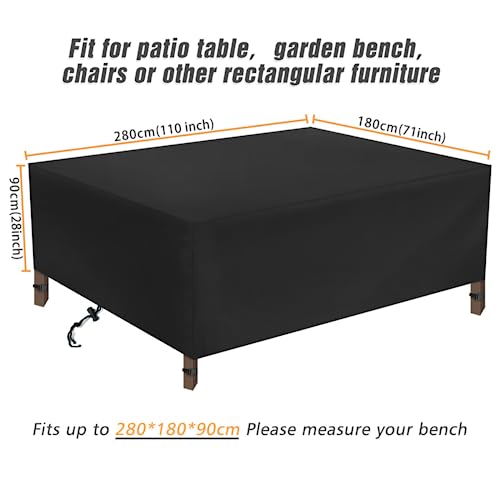 ??EXTRA LARGE?Our outdoor furniture cover is designed larger than most in the market. The size of the sofa cover is 110”x71''x36'' (280x180x90cm). Fits for a maximum of 12 seats furniture set. This is a special and difficult size to find in the market. Even in harsh environments, your furniture can be safe, clean and dry.