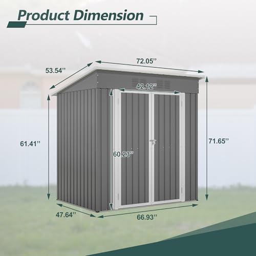 [Heightening door & Overall Height] Outdoor storage shed has upgraded the product height. The height of the door is 60.63" and the overall height is 71.26", which makes you more comfortable when entering the house without feeling depressed.