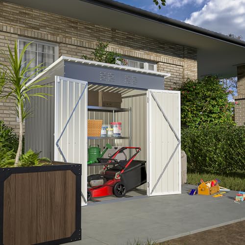 [Multifunctional use] 6'x4' outdoor Metal storage cabinet can be used not only as a tool shed, but also as a pet house, providing a safer and warmer room for your pet; it can also be used as a storage room for storing boxes, and can also be used as a garbage collection room to keep the backyard tidy. Which is a great shed house for backyard!