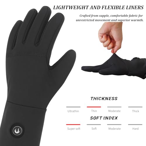 ?Rapid Heating Performance?These heated glove liners warm hands in under 30 seconds and offer three easily adjustable temperature settings via a touch-sensitive switch, accommodating varied comfort needs.Ideal for cold conditions and individuals with Raynaud’s syndrome, arthritis, poor circulation, or joint stiffness, they provide reliable warmth.