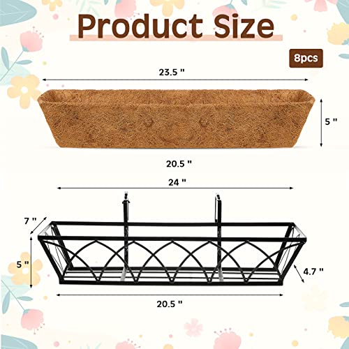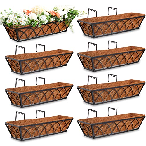 Ferraycle Window Deck Railing Planters Boxes with Coconut Liner, Window Boxes Planters Flower Boxes Metal Black Balcony Planters Railing Hanging for Outdoor Fence Porch Patio Lawn