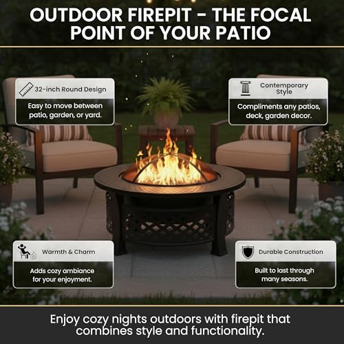 OUTDOOR FIRE PIT - This 32-inch round fire pit is sure to be the focal point of your patio or deck for many seasons to come. The contemporary design will complement any style of décor while adding the warmth and charm of a woodfire to your space.