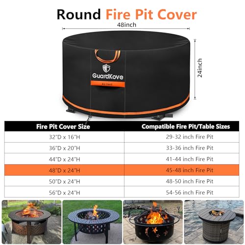??Easy Installation & Fits Multiple Sizes? This round fire pit cover is equipped with high-end mesh vents to effectively prevent moisture buildup. The portable handle design makes installation and removal easier and more convenient. Suitable for round fire pit up to size 48" D x 24" H, while compatible with 45, 46, 47, 48 inch round fire pit bowls or tables for multiple size needs.