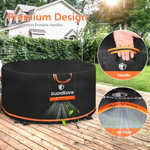 ??????High-end Design & Worry-free Guarantee? GuardKove fire pit cover adopts high-end orange embellishment design, and the black and orange color scheme is fashionable and atmospheric, which enhances the beauty of the courtyard and highlights individuality and high-end quality. In case of any quality problems or shipping damage, you can enjoy free replacement or refund, so that you can shop worry-free and enjoy an excellent experience!