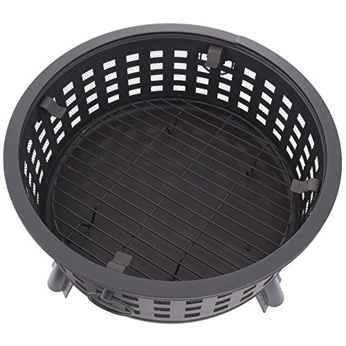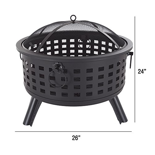 PRODUCT DETAILS- Fire Pit dimensions: 26" L x 26" W x 24" H. Material: Powder Coated Steel Frame, Resists Rusting. Includes Safety Log Poker, Spark Screen and protective cover made of Weather Resistant PVC