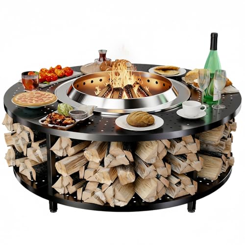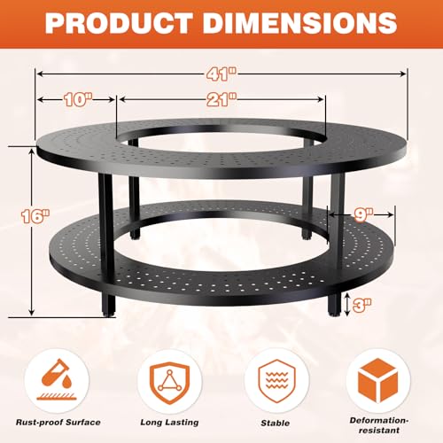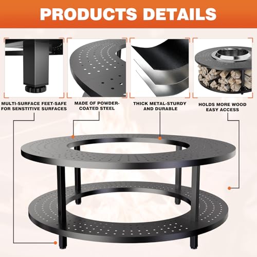 ?AMPLIFIED SPACE & BUILT-IN FIREWOOD STORAGE?Maximize your outdoor extra area with this 41-inch fire pit tabletop. It features a generous 10-inch-wide tabletop shelf for drinks and snacks, plus a dedicated 9-inch lower shelf that adds 3.5 cubic feet of storage space, giving you a handy place to keep firewood or other accessories neatly organized.Total Height - 16”?perfect fit for solo stove Bonfire 1.0&2.0 and Ranger 1.0&2.0.