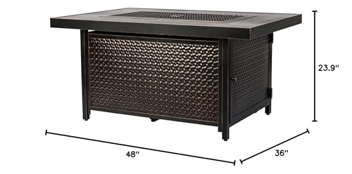 ???? FEATURES: 55,000 BTU output | Aluminum construction | Antique bronze finish | Stainless steel burner | Beautiful tall flame | Clear glass beads included | Fire pit cover included.