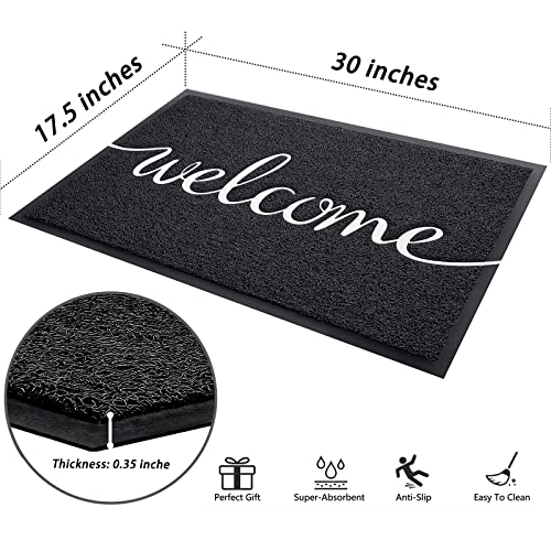 ???Perfect Size?Fireosma black welcome mat measures 30 inches long by 17.5 inches wide by 0.3 inches high. The low-profile design of the indoor door mat ensures that the door will not get stuck when opening and closing. This outdoor mat is suitable for all types of weather throughout the year.