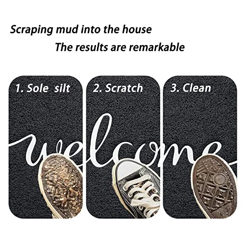 ???Dirt Catching Door mat?The front door mat concave lettering and raised edges help the rubber mat trap dirt more effectively. Simply scrape your shoes back and forth across the doormat a few times and any dirt, mud or snow on your shoes or pets will be removed, keeping your floors clean and dry.