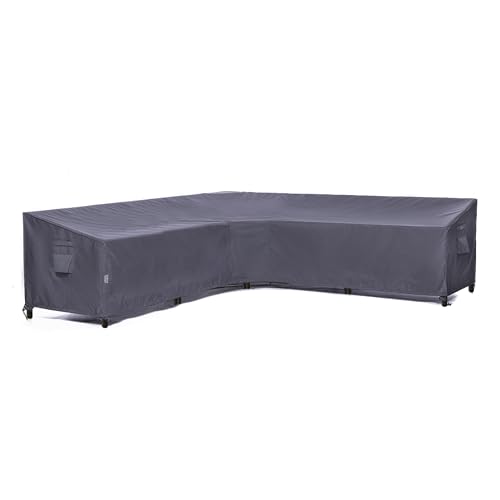 (85"+85")W x 33.5"D x 23"/31"H patio L-shape couch cover fits 6-piece 5 seater L shaped sectional couch.