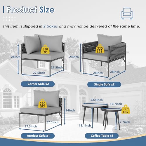 ?All-weather Materials and Durable Frame?Our outdoor conversation sets are supported by a high-quality steel frame, coupled with a durable powder coating to ensure good weather resistance and long-lasting durability. Each seat can hold up to 330 pounds, perfect for relaxing outdoors with family and friends