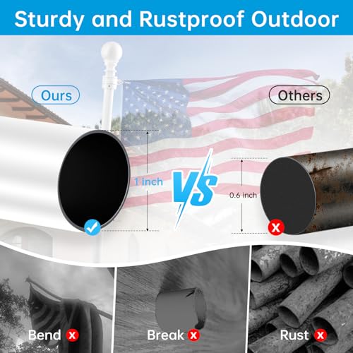 ?Sturdy,Rust-proof?:The 1-inch steel flagpole is powder-coated and crafted to ensure it can resist fading and wear, extend its service life, make it suitable for use in any weather conditions, and have a tangle-free design with adjustable rings. Easy to assemble