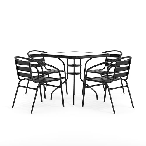 5-PIECE CAFE TABLE AND CHAIRS SET: Includes 1 table and 4 chairs so you can make the most of bright sunny days and laid back sultry evenings in your backyard, sunroom, patio, deck, and other indoor/outdoor areas