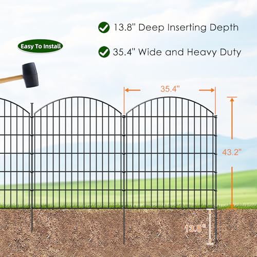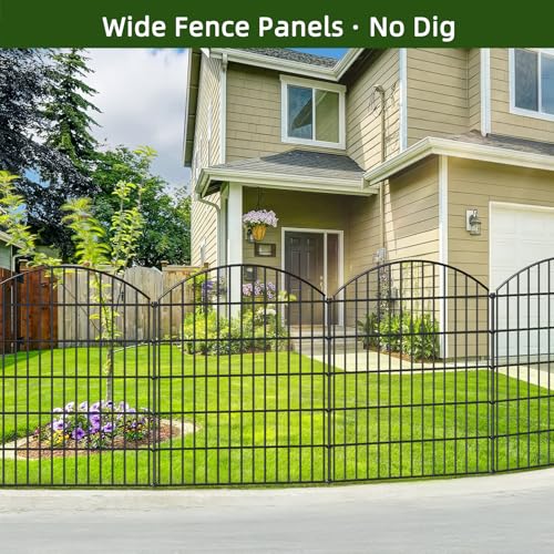 WHAT'S INCLUDED: 5 Fence Panels+6 Stakes in a bundle. Each Fence Panel sized 43.2 inch (H) x 35.4 inch (W), linear length 14.75 feet, Black color.