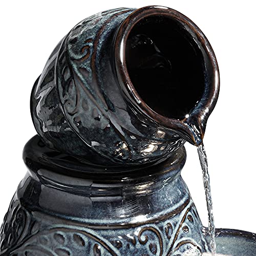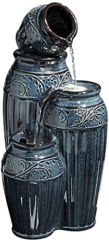 Four-urn cascading floor fountain with LED lights. By the John Timberland brand.