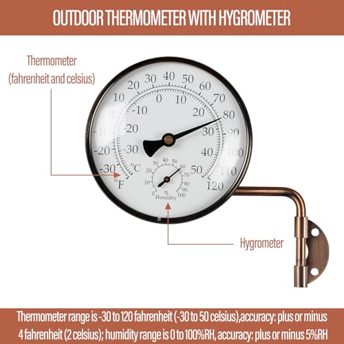 OUTDOOR THERMOMTER: Ideal for patio, greenhouse, garage, garden and any outdoor area where temperature and humidity monitoring is needed; lets you know if the air is humid, dry or at an ideal level