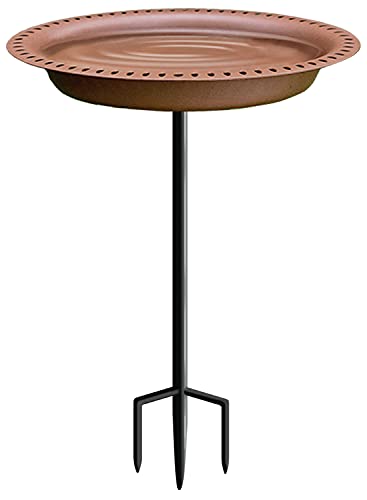 Sturdy & Durable: Made of high-quality PP material and covered with chocolate-color paint coating, this birdbath tray is artistic and uneasy to crack. Wear-proof and weather fastness, no fear of rain or sunburn. Heavy duty metal stake with black powder coat finish offers strong support for this bird bath to stay in the soil of your yard upright and firmly. 3 solid prongs base adds more stability for this birdbath so that it is hard to bend, break or fracture.