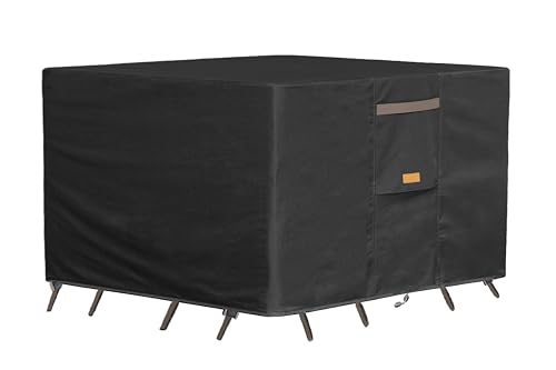 Easy to Use: Our rectangular patio furniture set cover with two wide padded handles make it easier to fit and remove.It can also be used for hanging and storage.High density waterproof fabric make the cover easy to clean. Simply hose with water and the dirt will disappear soon. Tips in using: Place a slightly higher object in the middle of the cover just in case water accumulates.