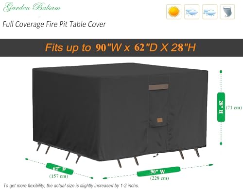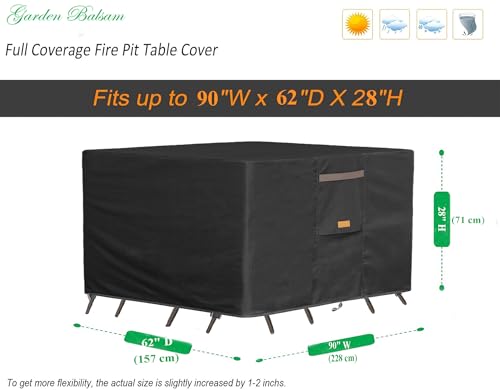 Size: General to fit rectangular/oval patio table and 4-6 standard chairs size up to 90"(W)x62"(D). Please be remind the include distance that chair backs jut out from the table while measuring.