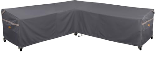 ?High Quality Materials?: Made of Polyester fabric with two layers waterproof & UV resistant coating,the material has passed an 500-hour color stability test,which means that it can withstand 360 days of UV exposure without fading like new after one year use,and the fabric won't tear after using 3 years, it has good tear resistance and fade resistance,durable.Don't worry about your furniture being affected by outdoor elements like sun, dirt, rain, snow, etc.