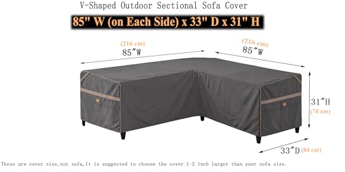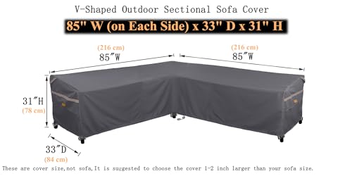 ?Size?: General to fit patio V-shaped sectional furniture sets size up to 85”W (on each side) x 33”D. Please measure your outdoor sofa overall dimensions before order.