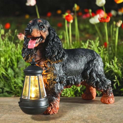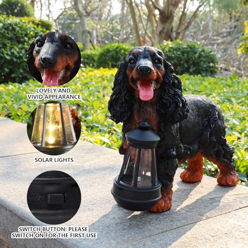 Solar Lights Garden Decorations: The dog carries the lamp powered by solar energy, charge during the daytime, and automatically turn on at night, outdoor garden statues can decorate your garden even at night, adding a unique atmosphere to your space