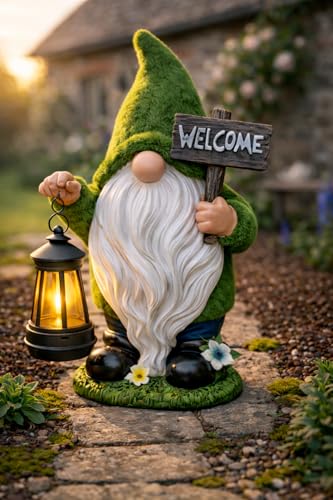 LIGHT UP YOUR OUTDOOR SPACE - Perfect for lawns, patios, pathways, porches, and flower beds. This solar gnome statue brings warm illumination and whimsical charm to any garden or outdoor decoration.
