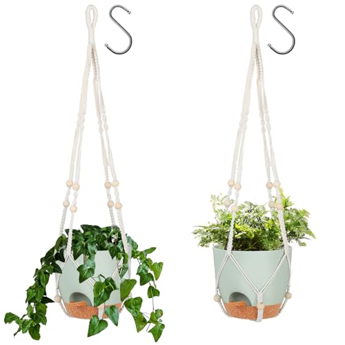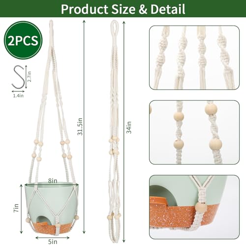 Boho Chic Design: Elevate your indoor space with these stylish macrame hanging planters, perfect for adding a touch of bohemian charm.