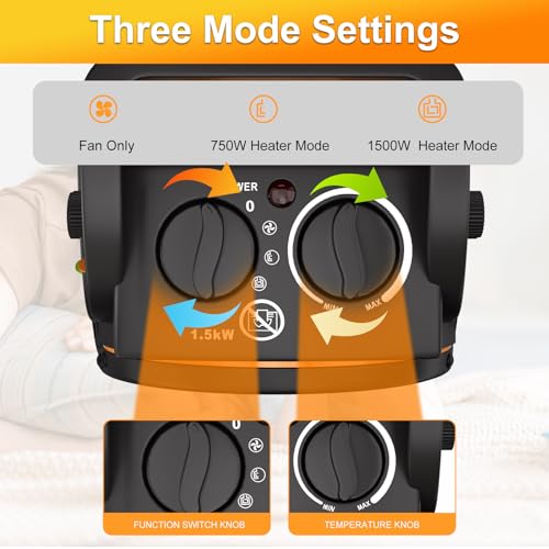 Three Modes: The electric heater has three modes of high heat (1500w), low heat (750w) and natural air (25w), which can meet your different needs, not only for heating, but also can be used as a fan