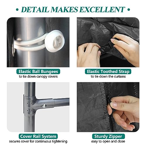 ????EASY TO ASSEMBLE: This waterproof outdoor Storage Shelter does not require additional patio tent tools to install. It is easy to assemble and you just need to keep the frame stable while assembling the shed steel tube and cover