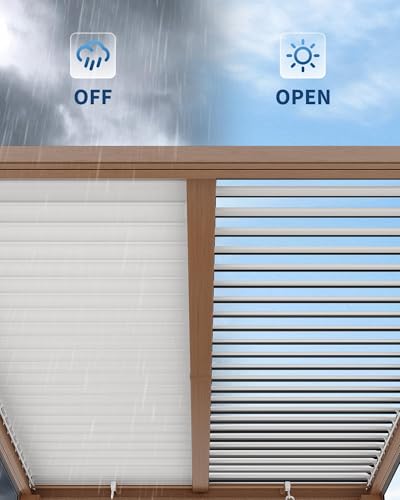 ?Fully Adjustable Louvered Roof? - Easily control sunlight and airflow by adjusting the louvers from 0° to 90° with a smooth hand crank. This aluminum pergola lets you customize shade on sunny days, enhance ventilation, or fully close the roof to protect against rain—transforming it into a versatile patio gazebo for any occasion