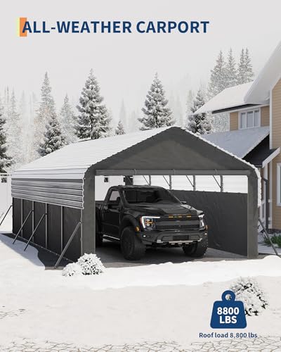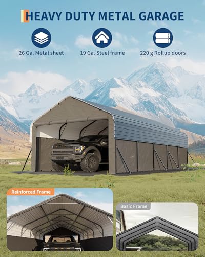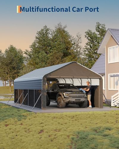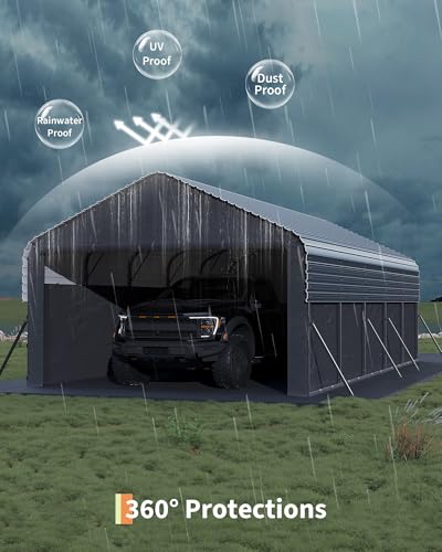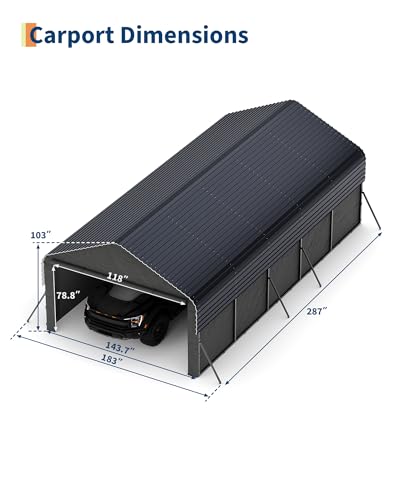 [Ample Space] L x W x H: 287'' x 144'' x 103''; you can easily park a full-sized pickup truck; side height 6'4'' allows you to put a compact trailer or RV inside
