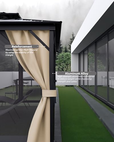 [Privacy and Comfort] Includes khaki curtains and mesh netting for light blocking, mosquito protection, and rain shielding; polyester fabric ensures easy-to-clean and no fading for a cozy outdoor experience.A good choice for creating a shaded retreat in your backyard gazebo