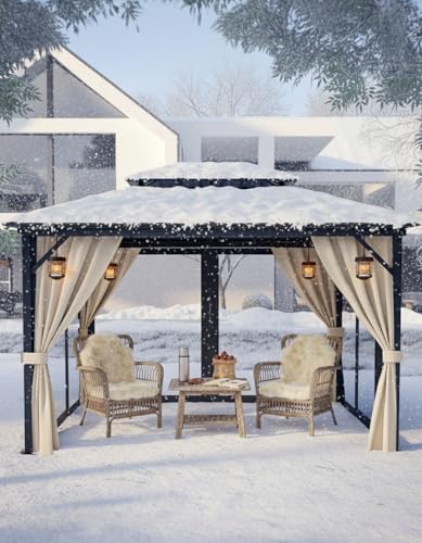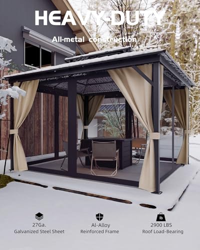 [Durable Design] Double roof with 27 gauge steel sheet and high-strength aluminum alloy frame with 3 in x3 in Reinforced poles for withstanding snow and high wind; ideal for year-round outdoor use