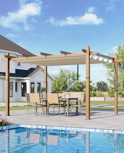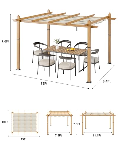 Practical and Aesthetic: This freestanding pergola is suitable for a variety of outdoor environments, including patios, poolside areas, and porches. The main color of the product features a wood-grain design that combines practicality with aesthetics, enhancing your outdoor space