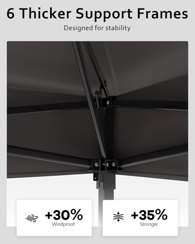 ?Sturdy & Compact?- Built with a premium corrosion-resistant metal frame, this canopy ensures exceptional rust resistance and can withstand various weather conditions. Its stable triangular design, reinforced with six top ribs, effectively distributes pressure to enhance the outdoor canopy's overall stability and wind resistance. Whether facing strong winds, heavy rain, or intense sunlight, this gazebo provides reliable protection.