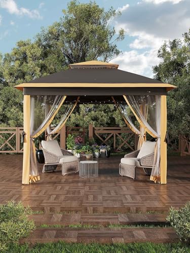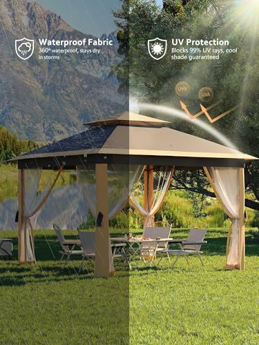 ?Large & Elegant?- Our outdoor gazebo 11*11 ft, provides you with 117ft² of really large space while taking into account the aesthetics, is the best choice for you to set up is to set up a temporary patio environment.