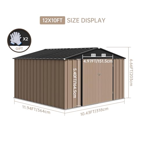 Spacious Outdoor Shed: This 12 x 10 ft garden sheds & outdoor storage offers ample interior space. A well-organized layout helps create clear storage zones, reduces clutter, and maximizes space utilization