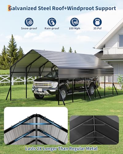 Unmatched All-Weather Durability: Engineered with high-strength steel and triple-layer rust protection, this carport is built to survive harsh conditions. It boasts an impressive 100 MPH wind resistance and a 35 PSF snow load capacity, offering unshakable protection for your prized possessions like RVs, tractors, and boats.